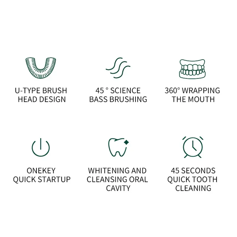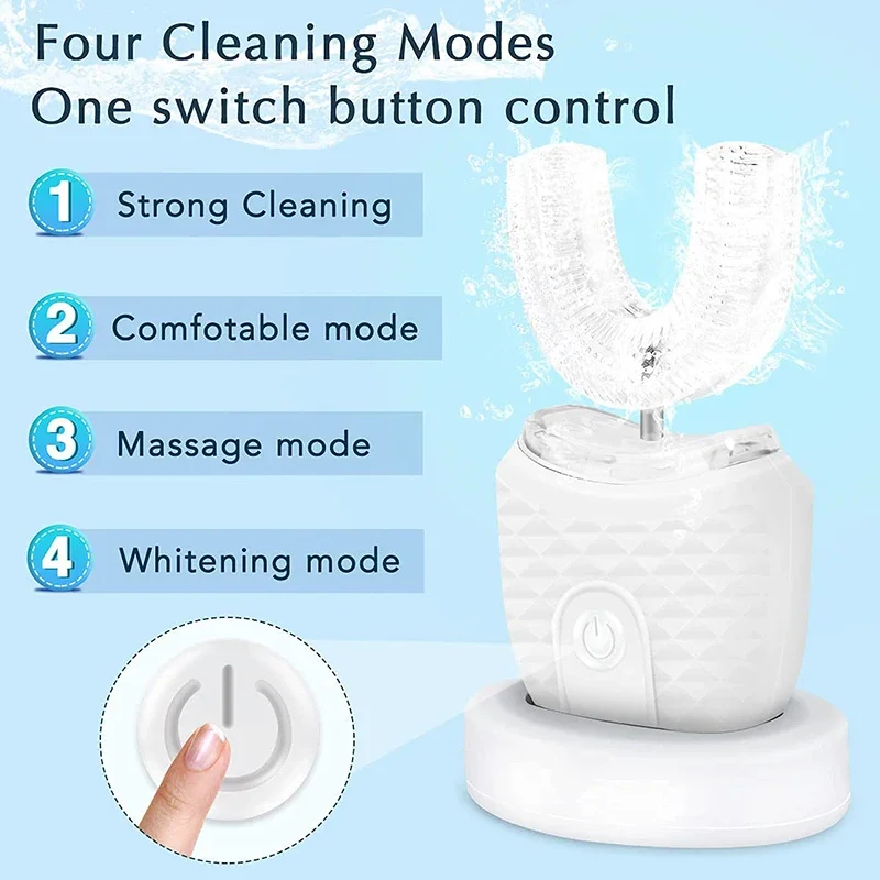 (4) Unique U-shape Bite Design:U-shaped bite is designed to fit the mouth shape,can clean the surface and interior of the teeth in all directions.